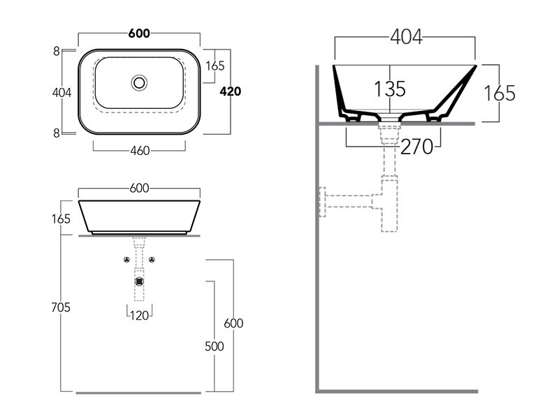 Благодаря возможности установки смесителя отдельно, вы сможете подобрать идеальное решение, наиболее удовлетворяющее ваши потребности и стилистические предпочтения. Отсутствие перелива в раковине накладной SIMAS WAVE WA 04 придает ей современный, лаконичный вид, который отлично впишется в современный интерьер ванной комнаты.