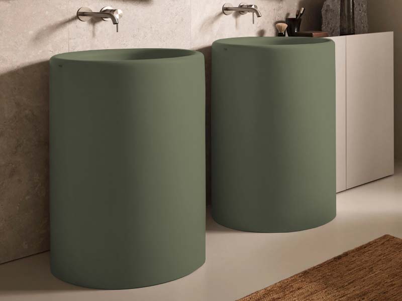 CIELO ITACA ITFREEC Раковина напольная отдельностоящая без отверстия под смеситель, без слива-перелива. Все стороны покрыты эмалью. В комплекте с крепежами. Дополнительно рекоментуется приобрести сифон для отдельностоящей ракоивны со сливом в пол SHFRSI. Размеры: d53xh85 см. Цвет Agave.