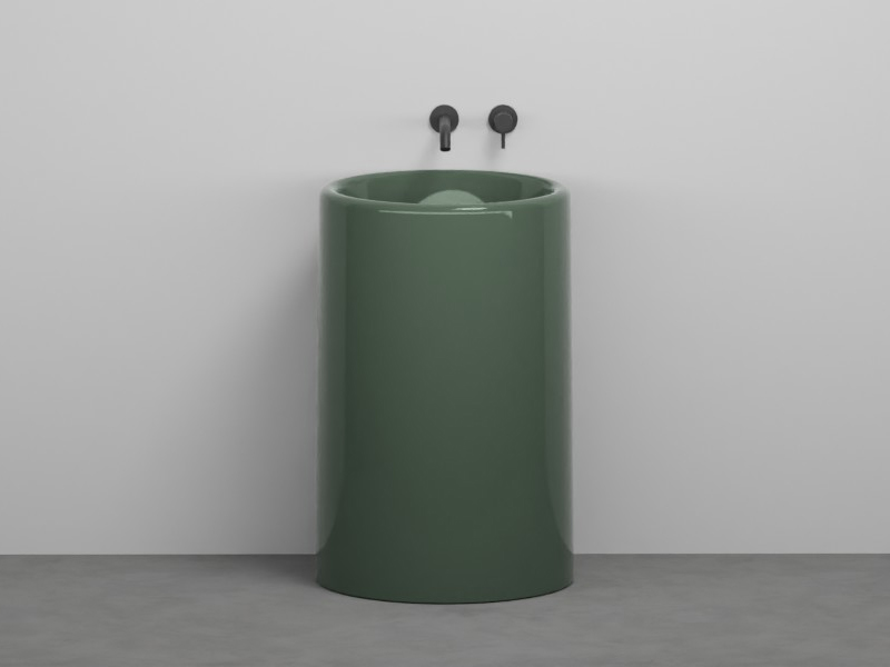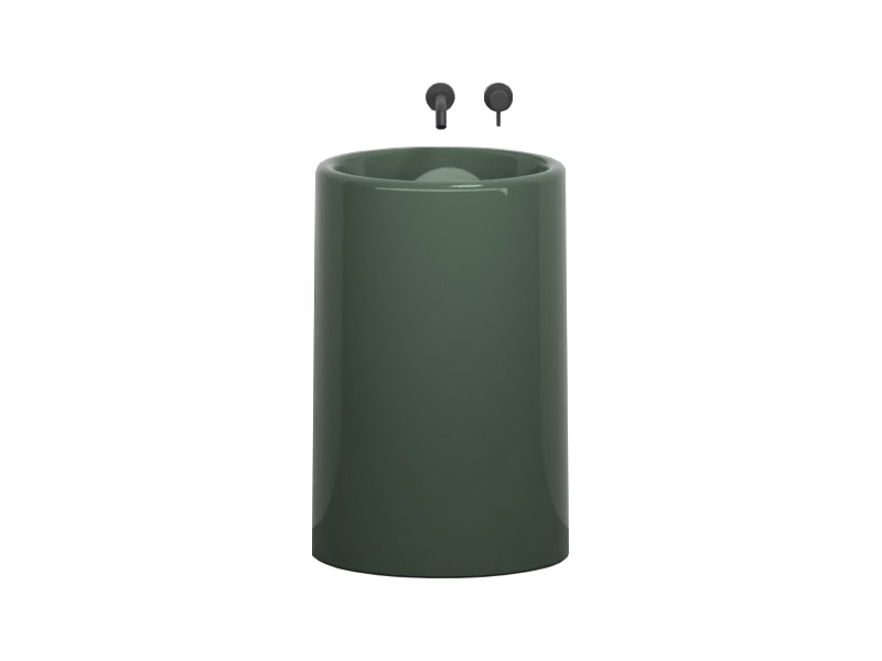 CIELO ITACA ITFREEC Раковина напольная отдельностоящая без отверстия под смеситель, без слива-перелива. Все стороны покрыты эмалью. В комплекте с крепежами. Дополнительно рекоментуется приобрести сифон для отдельностоящей ракоивны со сливом в пол SHFRSI. Размеры: d53xh85 см. Цвет Alga.