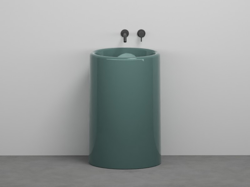 CIELO ITACA ITFREEC Раковина напольная отдельностоящая без отверстия под смеситель, без слива-перелива. Все стороны покрыты эмалью. В комплекте с крепежами. Дополнительно рекоментуется приобрести сифон для отдельностоящей ракоивны со сливом в пол SHFRSI. Размеры: d53xh85 см. Цвет Smeraldo.
