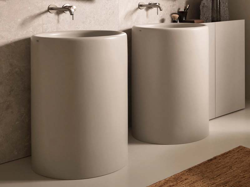 CIELO ITACA ITFREEP Раковина напольная отдельностоящая без отверстия под смеситель, без слива-перелива, со сливом в стену. Все стороны покрыты эмалью. Размеры: d53xh85 см. Цвет Avena.