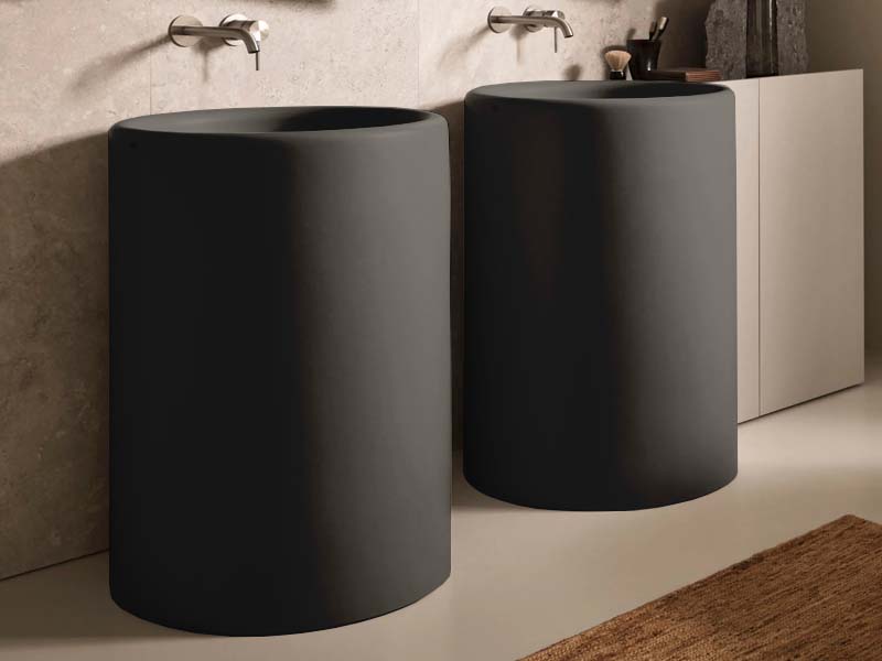 CIELO ITACA ITFREEP Раковина напольная отдельностоящая без отверстия под смеситель, без слива-перелива, со сливом в стену. Все стороны покрыты эмалью. Размеры: d53xh85 см. Цвет Fango.