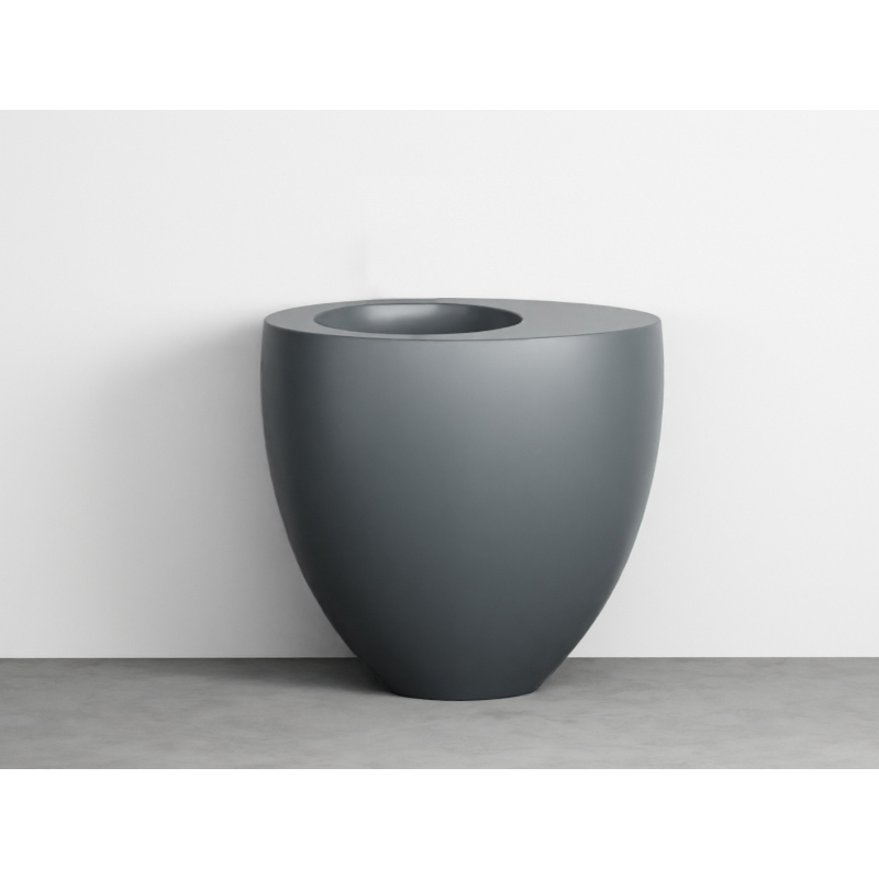 CIELO LE GIARE LGFREE Раковина напольная, отдельностоящая без отверстия под смеситель, без слива-перелива. Рекомендованна пристенная установка. Все стороны покрыты эмалью. Размеры: 88x63x83h см. Цвет Basalto.