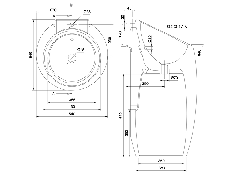 Размеры этой раковины (54x54x105 см) делают ее высокой, что создает впечатление элегантности и утонченности. Она точно не как у всех, и будет отличным выбором для тех, кто стремится к нестандартным решениям в интерьере.