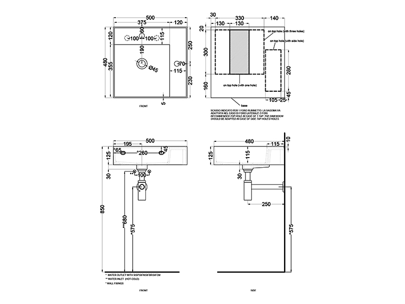 ENJOY Раковина подвесная с 1 отв. под смеситель, цвет Cipria