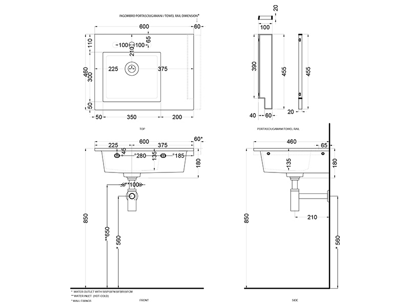 ERA Раковина подвесная,чаша слева, 1 отв.под смеситель, цвет Lavagna
