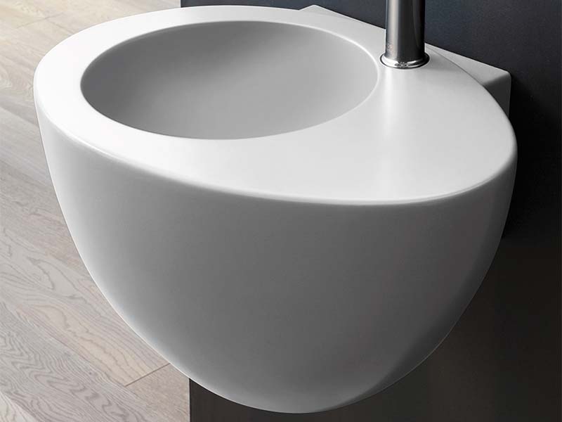 CIELO LE GIARE LGLS56 Раковина подвесная с одним отверстием под смеситель, без слива-перелива. В комплекте с крепежами. Одна сторона не покрыта эмалью. Размеры: 56x45x35h см. Цвет Gloss White.