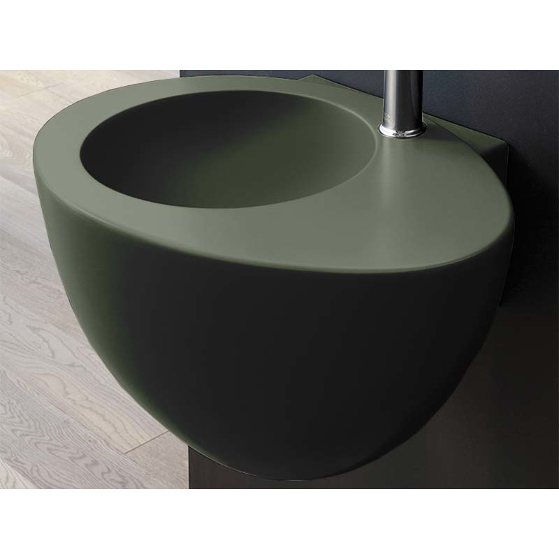 CIELO LE GIARE LGLS56 Раковина подвесная с одним отверстием под смеситель, без слива-перелива. В комплекте с крепежами. Одна сторона не покрыта эмалью. Размеры: 56x45x35h см. Цвет Agave.