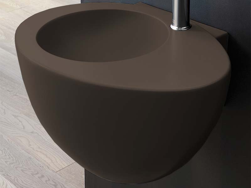 CIELO LE GIARE LGLS56 Раковина подвесная с одним отверстием под смеситель, без слива-перелива. В комплекте с крепежами. Одна сторона не покрыта эмалью. Размеры: 56x45x35h см. Цвет Cacao.