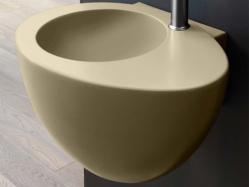 CIELO LE GIARE LGLS56 Раковина подвесная с одним отверстием под смеситель, без слива-перелива. В комплекте с крепежами. Одна сторона не покрыта эмалью. Размеры: 56x45x35h см. Цвет Canapa.