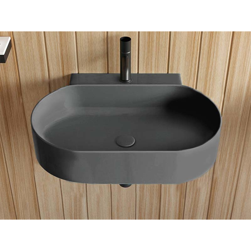 CIELO MARE MRLS60 Раковина подвесная с одним отверстием под смеситель с возможностью выполнения трех отверстий, без слива - перелива, одна сторона не покрыта эмалью. При установке на столешницу рекомендуется запросить опцию "RETTIFICA". Продается в комплекте с крепежами. Размеры: 60 x 47 x h15 см, цвет Cemento. Представленная модель раковины существует в различных цветовых решениях.