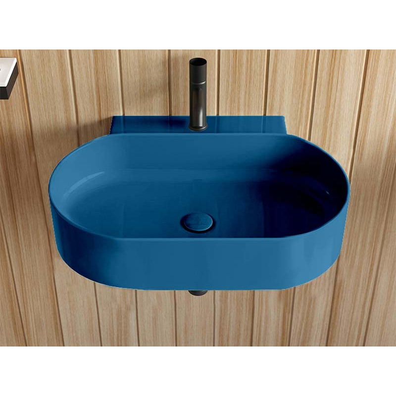 CIELO MARE MRLS60 Раковина подвесная с одним отверстием под смеситель с возможностью выполнения трех отверстий, без слива - перелива, одна сторона не покрыта эмалью. При установке на столешницу рекомендуется запросить опцию "RETTIFICA". Продается в комплекте с крепежами. Размеры: 60 x 47 x h15 см, цвет Oltremare. Представленная модель раковины существует в различных цветовых решениях.