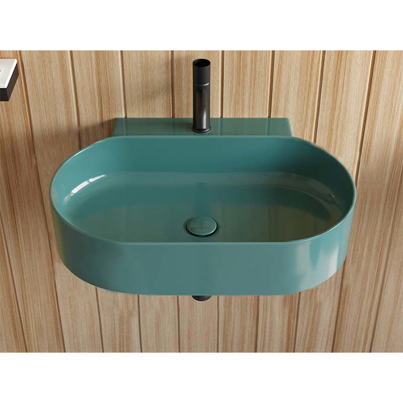 CIELO MARE MRLS60 Раковина подвесная с одним отверстием под смеситель с возможностью выполнения трех отверстий, без слива - перелива, одна сторона не покрыта эмалью. При установке на столешницу рекомендуется запросить опцию "RETTIFICA". Продается в комплекте с крепежами. Размеры: 60 x 47 x h15 см, цвет Smeraldo. Представленная модель раковины существует в различных цветовых решениях.