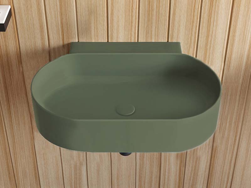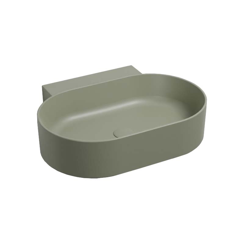 CIELO MARE MRLS60SF Раковина подвесная без отверстия под смеситель, без слива - перелива, одна сторона не покрыта эмалью. При установке на столешницу рекомендуется запросить опцию "RETTIFICA". Продается в комплекте с крепежами. Размеры: 60 x 47 x h15 см, цвет Agave. Представленная модель раковины существует в различных цветовых решениях.