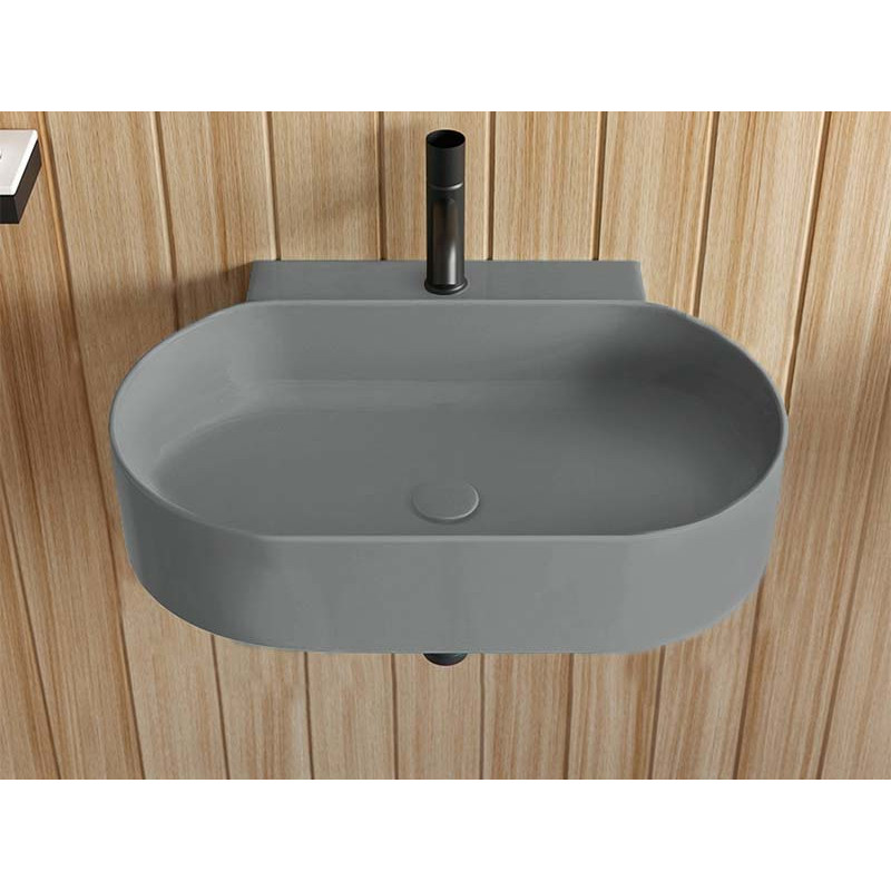 CIELO MARE MRLS70 Раковина подвесная с одним отверстием под смеситель с возможностью выполнения трех отверстий, без слива - перелива, одна сторона не покрыта эмалью. При установке на столешницу рекомендуется запросить опцию "RETTIFICA". Продается в комплекте с крепежами. Размеры: 70 x 47 x h15 см, цвет Brina. Представленная модель раковины существует в различных цветовых решениях.