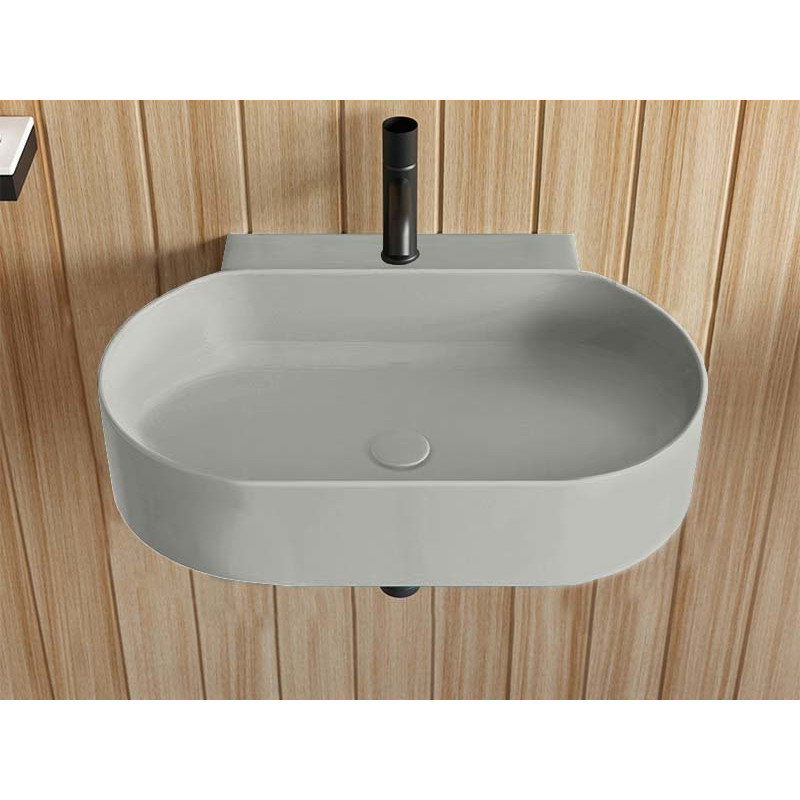 CIELO MARE MRLS70 Раковина подвесная с одним отверстием под смеситель с возможностью выполнения трех отверстий, без слива - перелива, одна сторона не покрыта эмалью. При установке на столешницу рекомендуется запросить опцию "RETTIFICA". Продается в комплекте с крепежами. Размеры: 70 x 47 x h15 см, цвет Pomice. Представленная модель раковины существует в различных цветовых решениях.