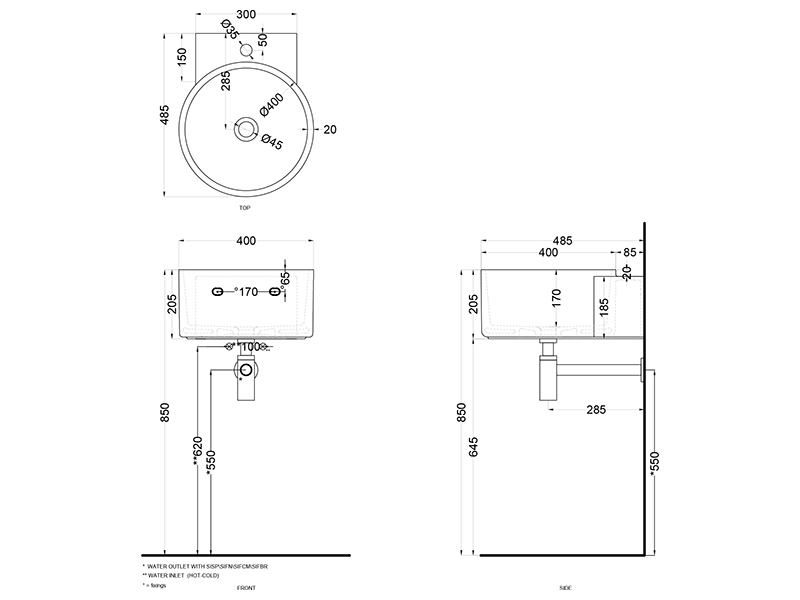 CIELO SELLA SELS Раковина подвесная с одним отверстием под смеситель, без слива-перелива,в комплекте с крепежами. Размеры:40 x 48