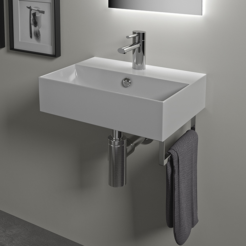 Раковина подвесная или встраиваемая в мебель HATRIA BAHIA_13 BH0500365011TS, одно отверстие для смесителя по центру, с отверстием перелива, размер 50х36.5x13 см, белая. Крепления, полотенцедержатель, структура под раковину заказывается отдельно.