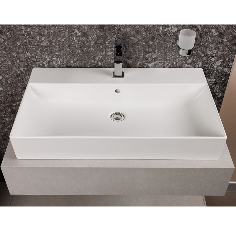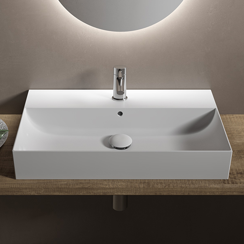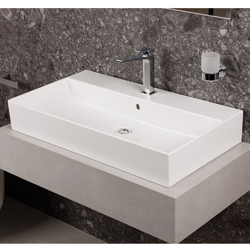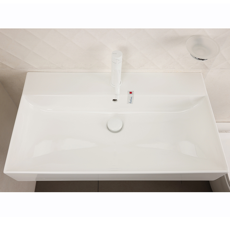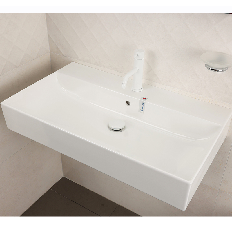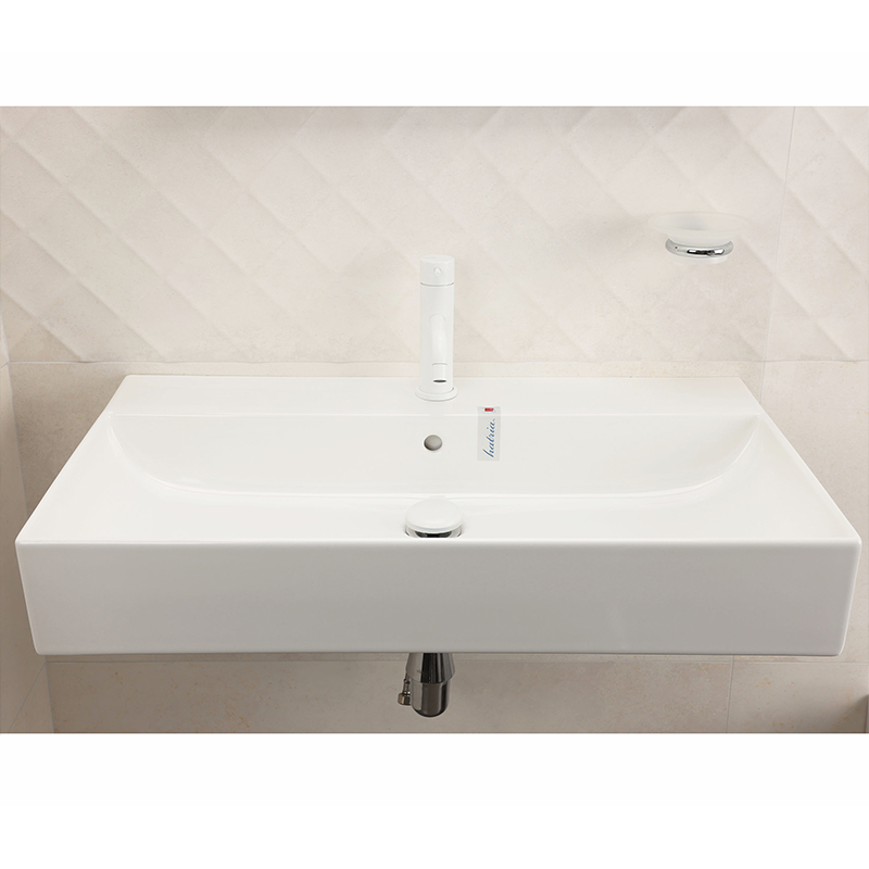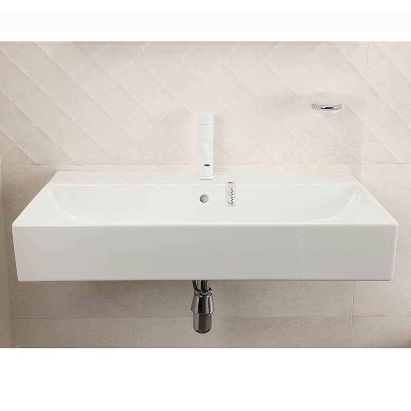 Раковина подвесная или встраиваемая в мебель HATRIA BAHIA_13 BH0800465011TS, одно отверстие для смесителя по центру, с отверстием перелива, размер 80х46.5x13 см, белая. Крепления, донный клапан, сифон, полотенцедержатель, структура под раковину заказывается отдельно.