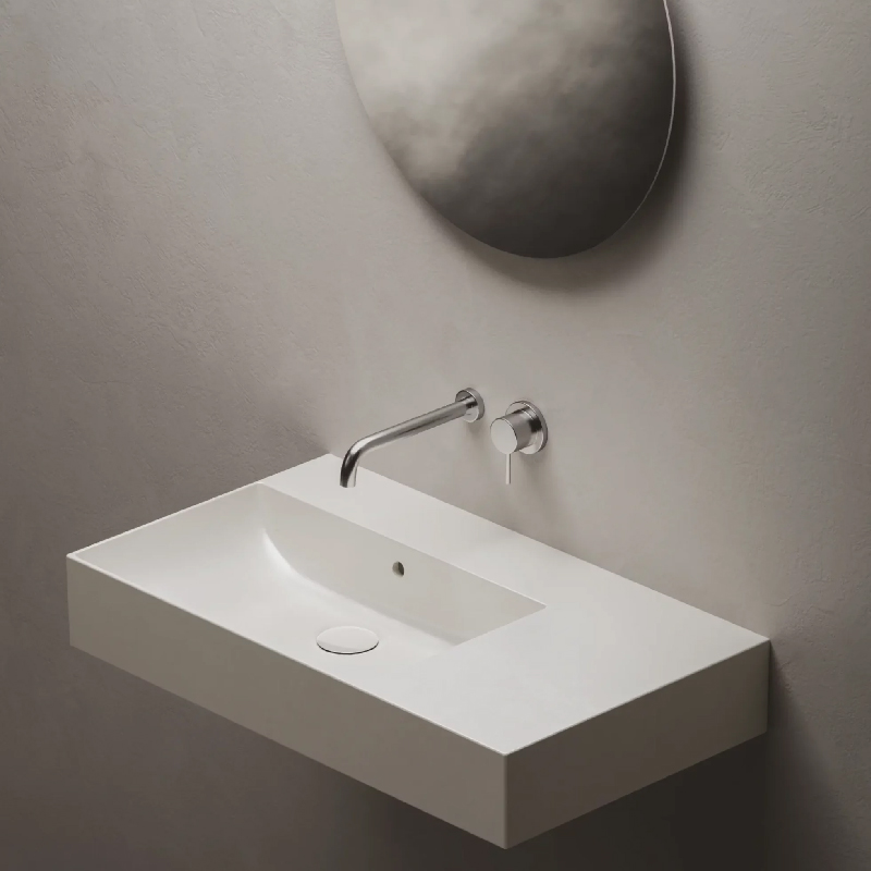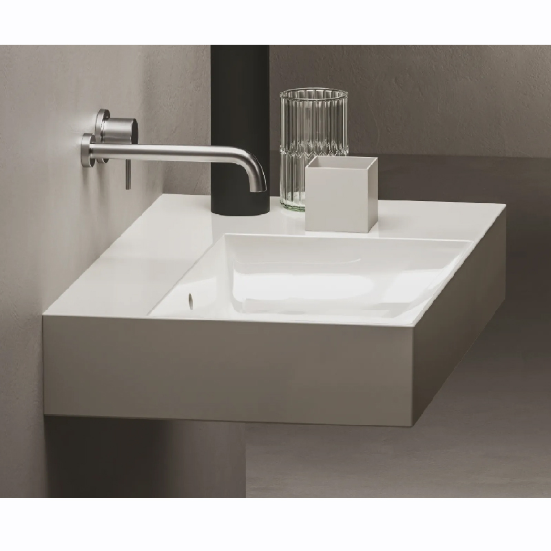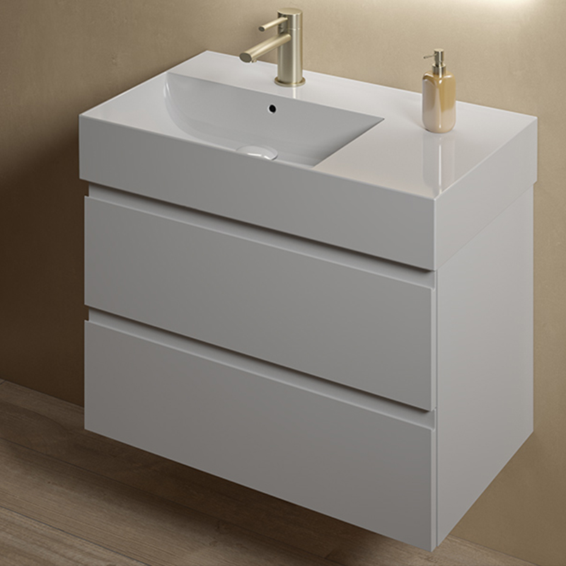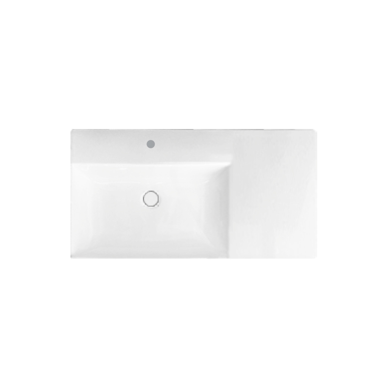Раковина подвесная или встраиваемая в мебель HATRIA BAHIA_13 BHD800465011TS, одно отверстие для смесителя по центру, столешница справа, с отверстием перелива, размер 80х46.5x13 см, белая. Крепления, донный клапан, сифон, полотенцедержатель, структура под раковину заказываются отдельно.