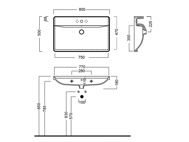Раковина Hatria Canal Grande Y1EK может иметь 2 варианта установки: подвесная и встраиваемая на тумбу. Размеры составляют 80х50 см. Цвет - белый. Раковина подвесная с одним отверстием под смеситель, с отверстием перелива. Форма - прямоугольная. Материал - фаянс. В комплекте идут крепления. Пьедестал, сифон и полочки в комплекте не предусмотрены. Глубина изделия - 50 см, высота - 18 см, вес - 28 кг..
