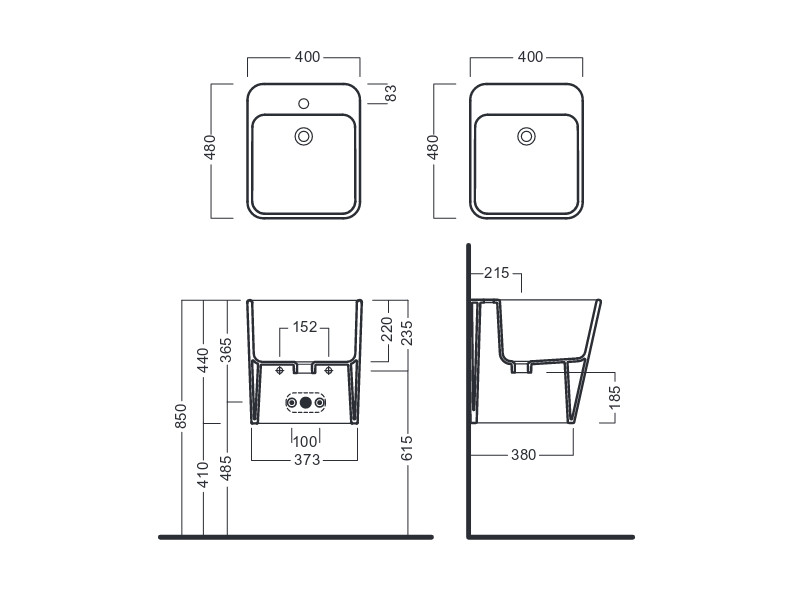 Раковина подвесная HATRIA G-FULL YXJG01, с 1 отверстием, без перелива, размер 40х48х44 см, цвет белый. Крепления, сифон и донный клапан приобретаются отдельно.