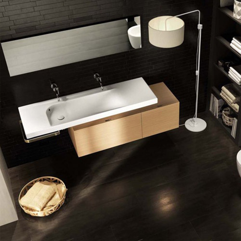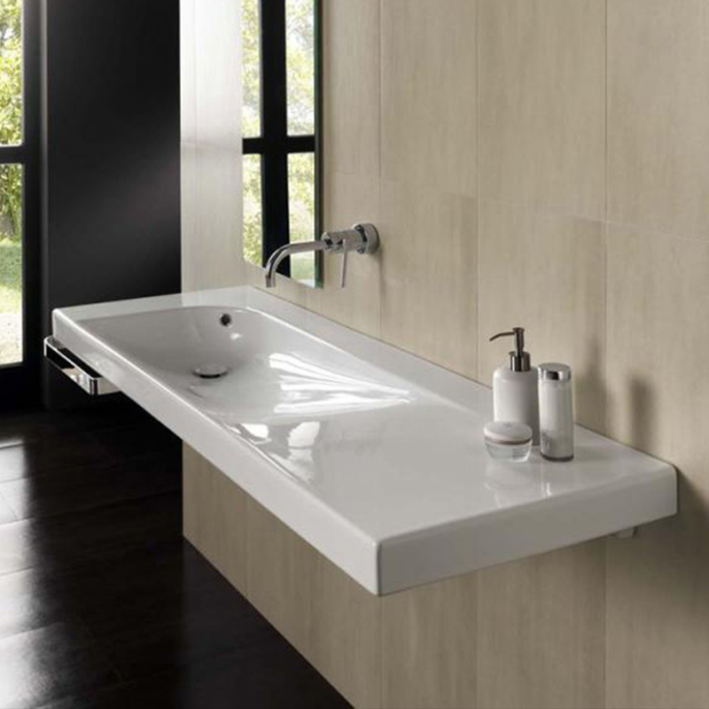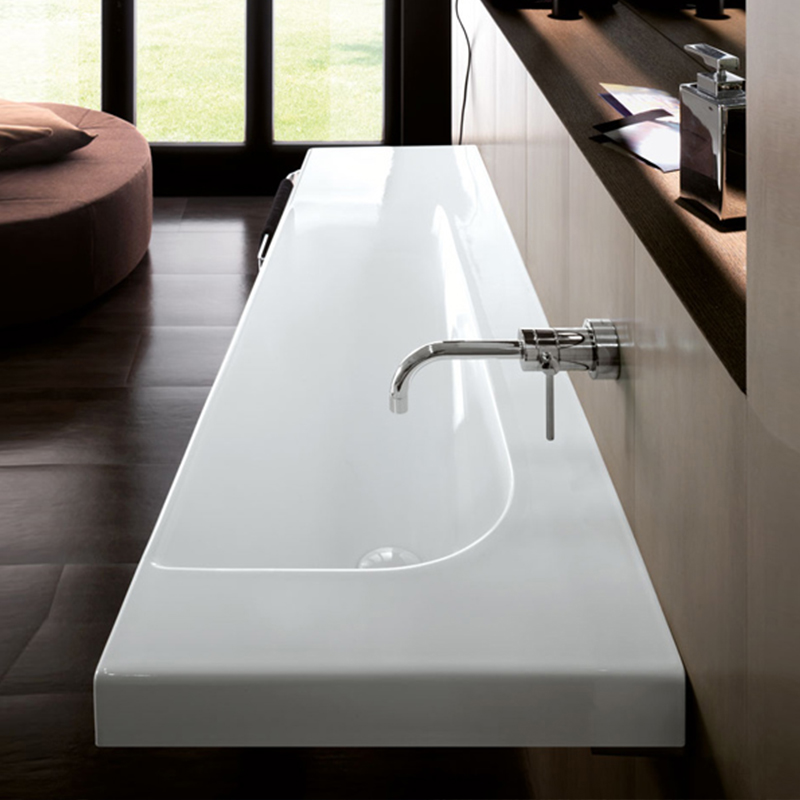 Раковина подвесная HATRIA GRANDANGOLO Y0XS01, без отверстий для смесителя, с переливом, размер 130х50 см, цвет белый. Установка подвесная или на тумбу. Крепление, донный клапан и сифон приобретаются отдельно. Дополнительно возможно укомплектовать угловым полотенцедержателем.
