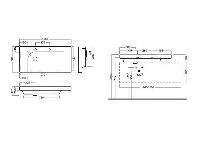Раковина подвесная HATRIA GRANDANGOLO YXF701, с одним отверстием для смесителя (намечено еще 2 отверстия), с переливом, размер 100х50 см, цвет белый. Установка подвесная или на тумбу. Крепление, донный клапан и сифон приобретаются отдельно. Дополнительно возможно укомплектовать полотенцедержателем.