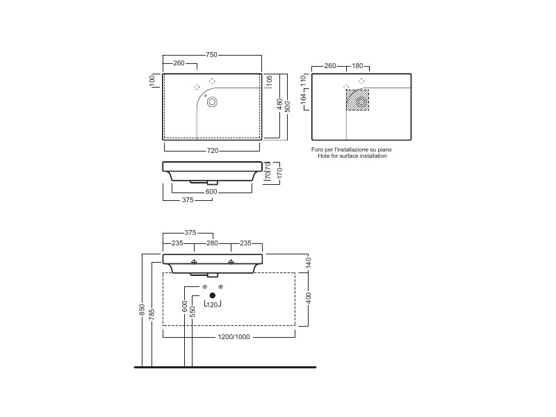 Раковина подвесная HATRIA GRANDANGOLO YXF801, с 1 отверстием для смесителя, с переливом, чаша справа, еще одно намеченное отверстие, размер 75х50 см, цвет белый. Установка подвесная или на тумбу. Крепление в комплекте. Донный клапан и сифон приобретаются отдельно. Дополнительно возможно укомплектовать полотенцедержателем.