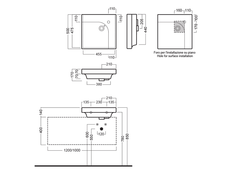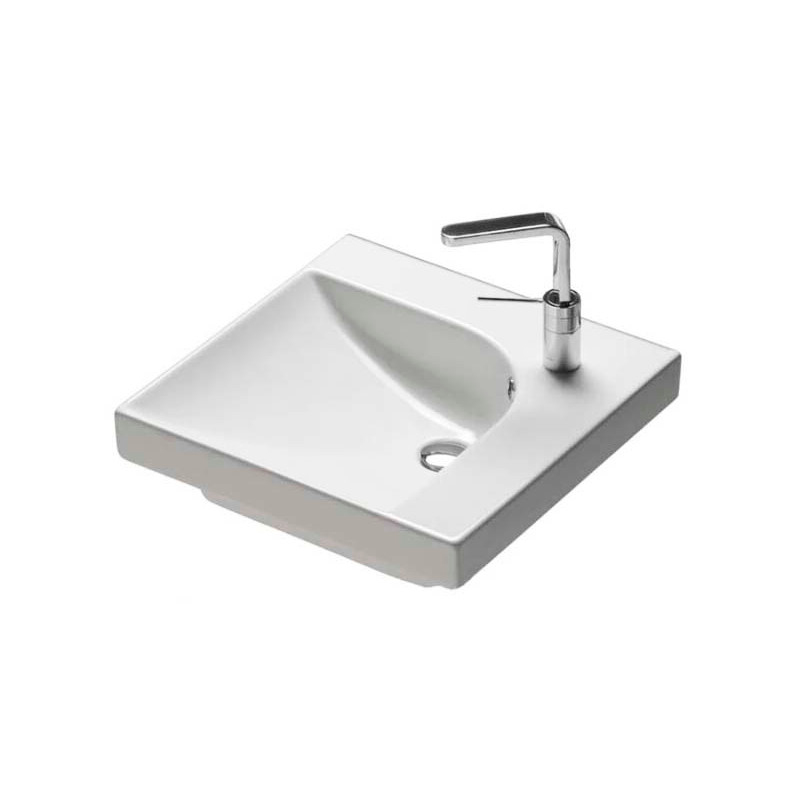 Раковина подвесная HATRIA GRANDANGOLO YXFB01, с 1 отверстием для смесителя, чаша слева, размер 50х50 см, цвет белый. Монтируется на стену с помощью крепежей (входят в комплект), также возможен встраиваемый в мебель монтаж. Донный клапан и сифон приобретаются отдельно. Дополнительно возможно укомплектовать полотенцедержателем.
