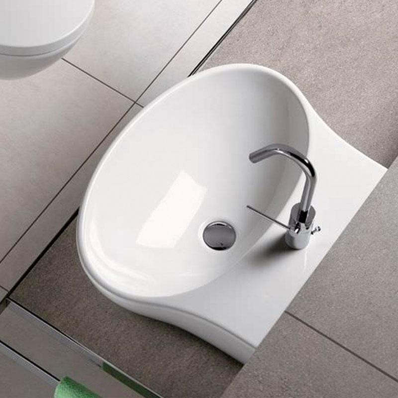 Раковина подвесная HATRIA NIDO Y0TT01, размер 56х44.5 см, цвет белый. Раковина с одним центральным отверстием под смеситель (еще два намечены), с отверстием перелива, может дополняться полупьедесталом Y0R601 или напольным пьедесталом YH3001. Устанавливается на стене с помощью крепежа (приобретается отдельно).