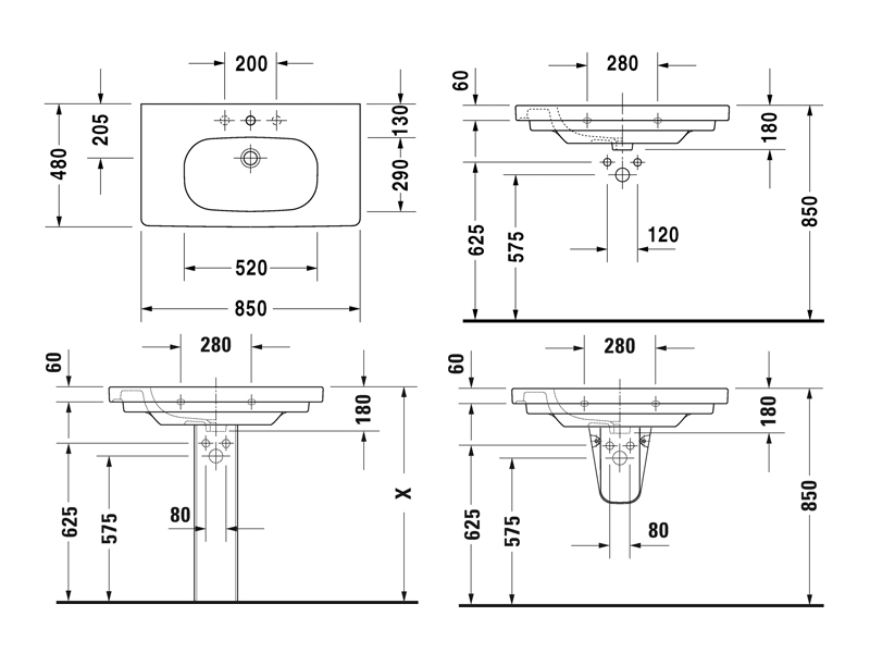 D-CODE Раковина для мебели, с переливом, с плоскостью под смеситель, 1 отверстие для смесителя, размер 80х48 см, цвет белый