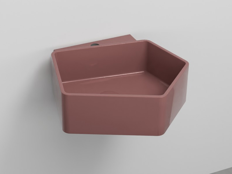 CIELO KANTO KALS Раковина подвесная с одним отверстием под смеситель, без слива-перелива. Возможна установка на столешницу. Одна сторона не покрыта на столешницу. В комплекте с креплениями. Размеры: 50x52x18h см. Цвет Corallo.
