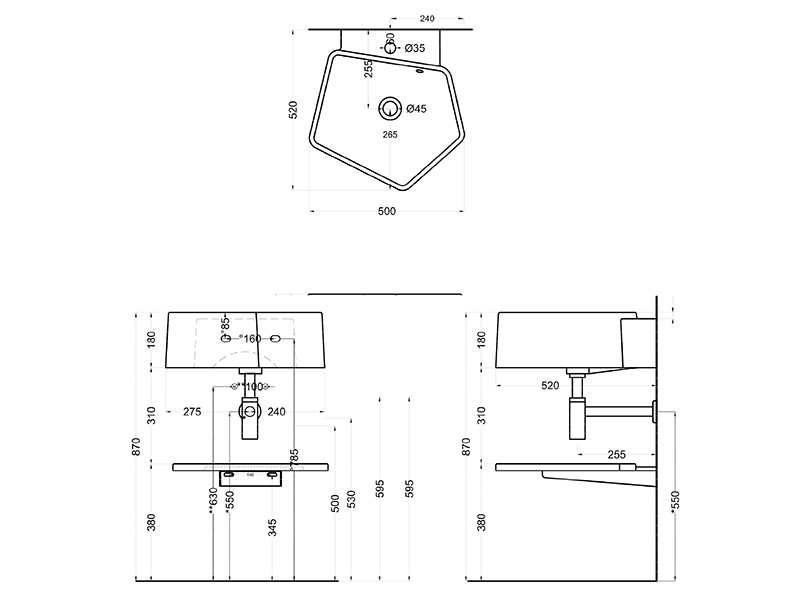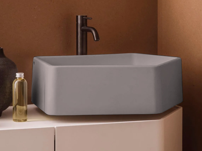 CIELO KANTO KALS Раковина подвесная с одним отверстием под смеситель, без слива-перелива. Возможна установка на столешницу. Одна сторона не покрыта на столешницу. В комплекте с креплениями. Размеры: 50x52x18h см. Цвет Cipria.