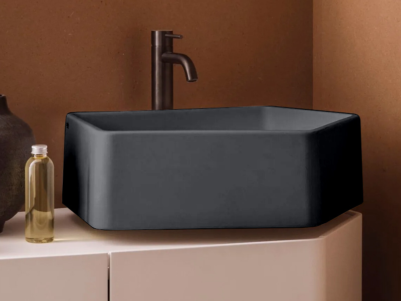 CIELO KANTO KALS Раковина подвесная с одним отверстием под смеситель, без слива-перелива. Возможна установка на столешницу. Одна сторона не покрыта на столешницу. В комплекте с креплениями. Размеры: 50x52x18h см. Цвет Lavagna.