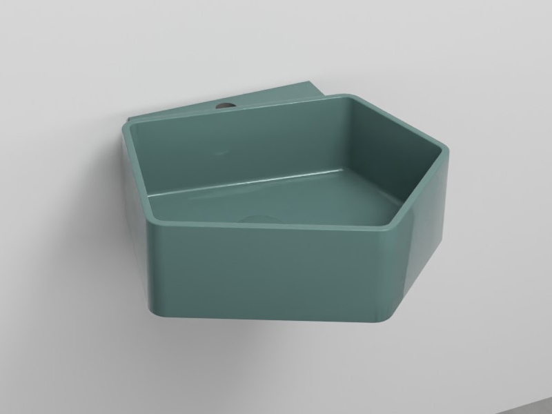 CIELO KANTO KALS Раковина подвесная с одним отверстием под смеситель, без слива-перелива. Возможна установка на столешницу. Одна сторона не покрыта на столешницу. В комплекте с креплениями. Размеры: 50x52x18h см. Цвет Smeraldo.