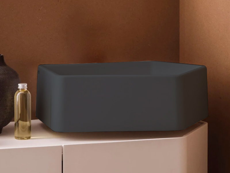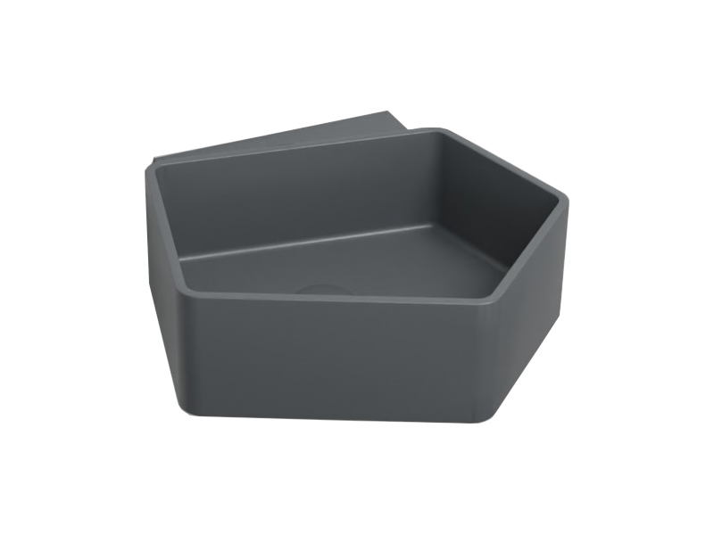 CIELO KANTO KALS Раковина подвесная без отверстия под смеситель, без слива-перелива. Возможна установка на столешницу. Одна сторона не покрыта на столешницу. В комплекте с креплениями. Размеры: 50x52x18h см. Цвет Basalto.