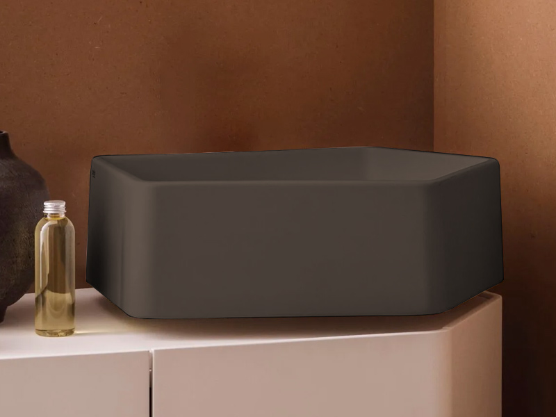 CIELO KANTO KALS Раковина подвесная без отверстия под смеситель, без слива-перелива. Возможна установка на столешницу. Одна сторона не покрыта на столешницу. В комплекте с креплениями. Размеры: 50x52x18h см. Цвет Cacao.