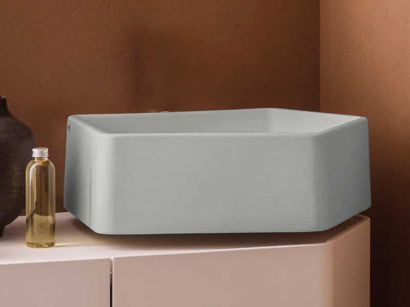 CIELO KANTO KALS Раковина подвесная без отверстия под смеситель, без слива-перелива. Возможна установка на столешницу. Одна сторона не покрыта на столешницу. В комплекте с креплениями. Размеры: 50x52x18h см. Цвет Pomice.