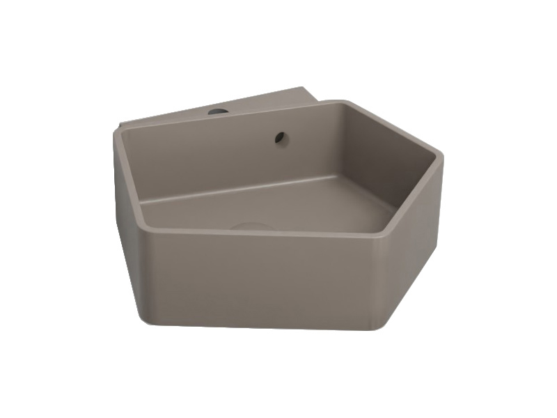 CIELO KANTO KALS Раковина подвесная с одним отверстием под смеситель, с сливом-переливом . Возможна установка на столешницу. Одна сторона не покрыта на столешницу. В комплекте с креплениями. Размеры: 50x52x18h см. Цвет Arenaria.