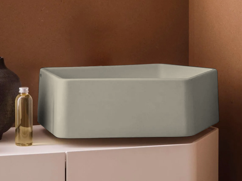 CIELO KANTO KALS Раковина подвесная без отверстия под смеситель, без слива-перелива. Возможна установка на столешницу. Одна сторона не покрыта на столешницу. В комплекте с креплениями. Размеры: 50x52x18h см. Цвет Lino.