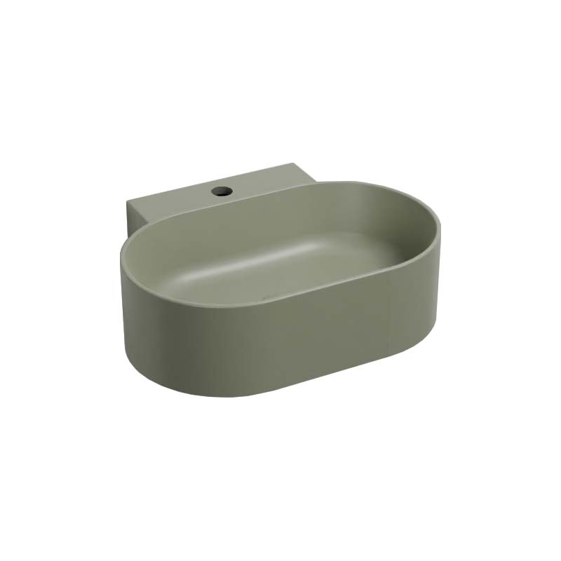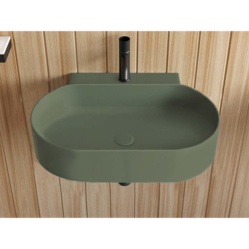 CIELO MARE MRLS50 Раковина подвесная с одним отверстием под смеситель с возможностью выполнения трех отверстий, без слива - перелива, одна сторона не покрыта эмалью. При установке на столешницу рекомендуется запросить опцию "RETTIFICA". Продается в комплекте с крепежами. Размеры: 50 x 40x h15 см, цвет Agave. Представленная модель раковины существует в различных цветовых решениях.