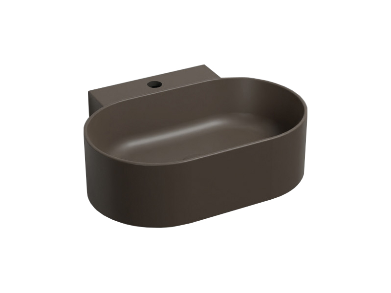 CIELO MARE MRLS50 Раковина подвесная с одним отверстием под смеситель с возможностью выполнения трех отверстий, без слива - перелива, одна сторона не покрыта эмалью. При установке на столешницу рекомендуется запросить опцию "RETTIFICA". Продается в комплекте с крепежами. Размеры: 50 x 40x h15 см, цвет Cacao. Представленная модель раковины существует в различных цветовых решениях.