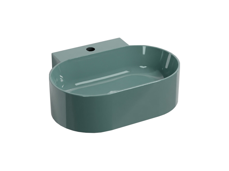 CIELO MARE MRLS50 Раковина подвесная с одним отверстием под смеситель с возможностью выполнения трех отверстий, без слива - перелива, одна сторона не покрыта эмалью. При установке на столешницу рекомендуется запросить опцию "RETTIFICA". Продается в комплекте с крепежами. Размеры: 50 x 40x h15 см, цвет Smeraldo. Представленная модель раковины существует в различных цветовых решениях.