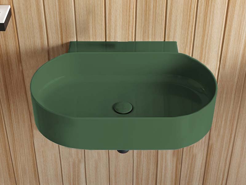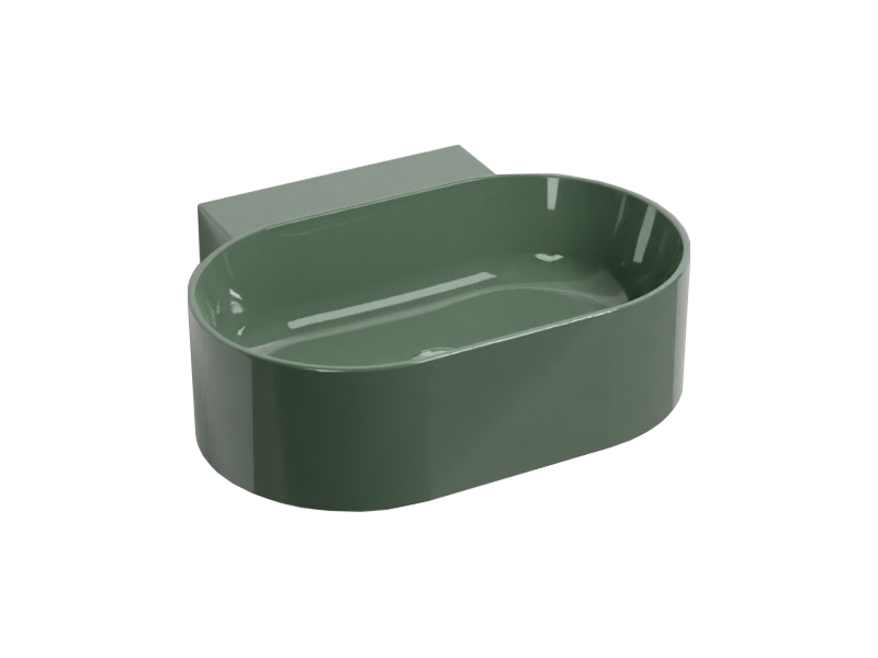 CIELO MARE MRLS50 Раковина подвесная без отверстия под смеситель, без слива - перелива, одна сторона не покрыта эмалью. При установке на столешницу рекомендуется запросить опцию "RETTIFICA". Продается в комплекте с крепежами. Размеры: 50 x 40x h15 см, цвет Alga. Представленная модель раковины существует в различных цветовых решениях.