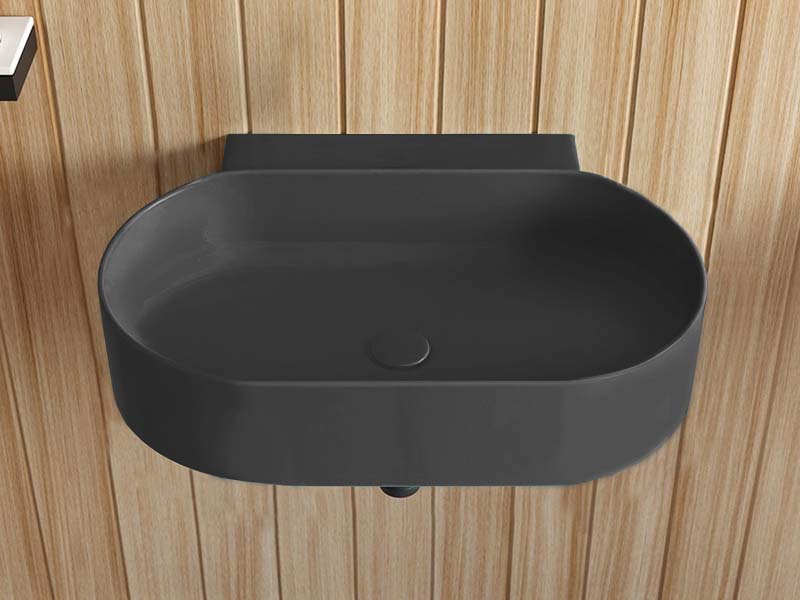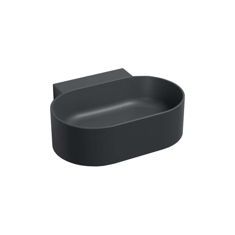 CIELO MARE MRLS50 Раковина подвесная без отверстия под смеситель, без слива - перелива, одна сторона не покрыта эмалью. При установке на столешницу рекомендуется запросить опцию "RETTIFICA". Продается в комплекте с крепежами. Размеры: 50 x 40x h15 см, цвет Basalto. Представленная модель раковины существует в различных цветовых решениях.