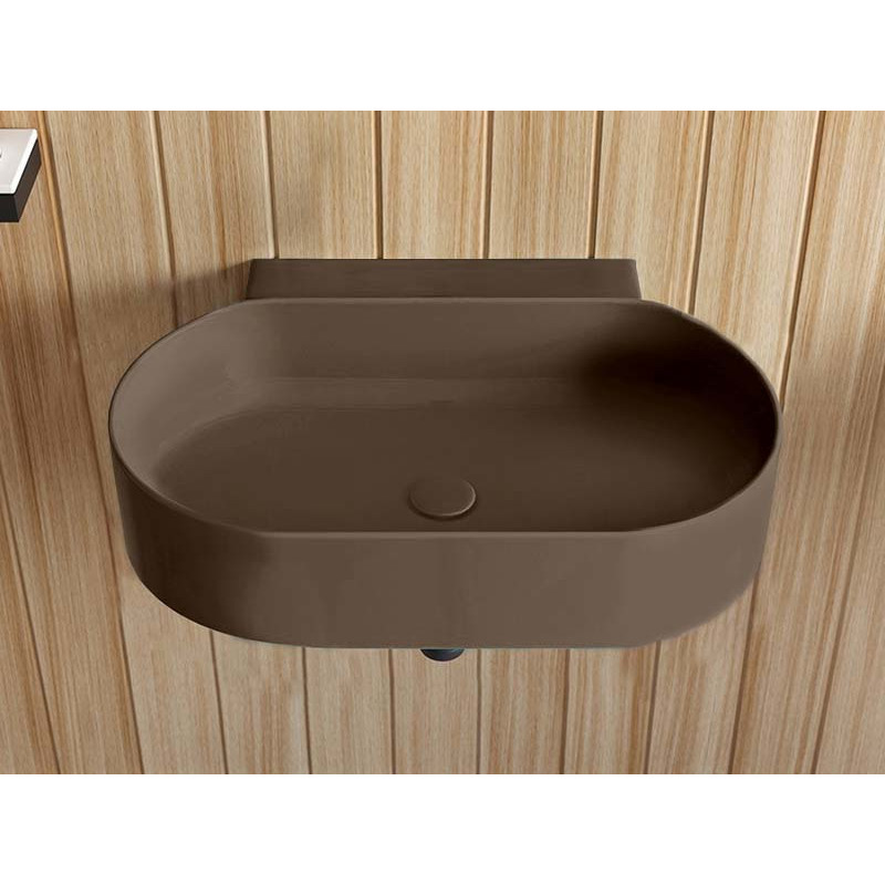 CIELO MARE MRLS50 Раковина подвесная без отверстия под смеситель, без слива - перелива, одна сторона не покрыта эмалью. При установке на столешницу рекомендуется запросить опцию "RETTIFICA". Продается в комплекте с крепежами. Размеры: 50 x 40x h15 см, цвет Cacao. Представленная модель раковины существует в различных цветовых решениях.