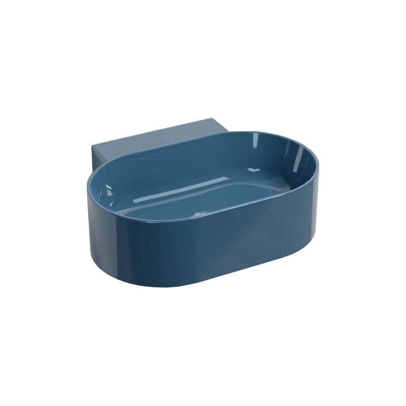 CIELO MARE MRLS50 Раковина подвесная без отверстия под смеситель, без слива - перелива, одна сторона не покрыта эмалью. При установке на столешницу рекомендуется запросить опцию "RETTIFICA". Продается в комплекте с крепежами. Размеры: 50 x 40x h15 см, цвет Oltremare. Представленная модель раковины существует в различных цветовых решениях.