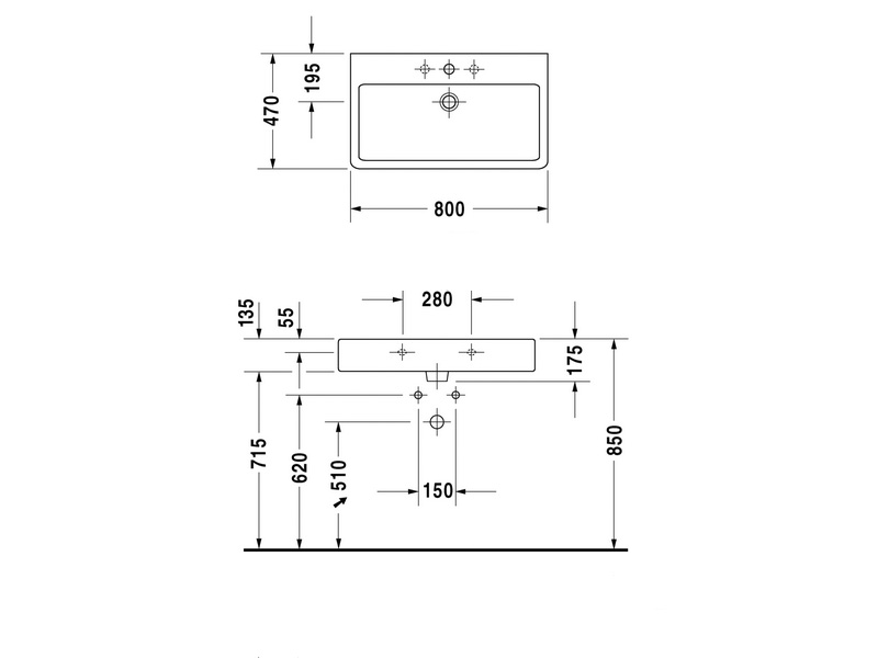 VERO Умывальник с переливомс плоскостью под смеситель1 отверстие для смесителяразмер 80х47 смцвет белый