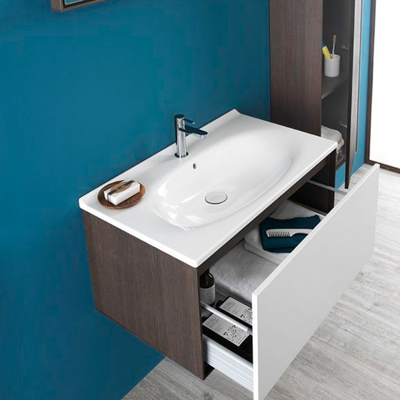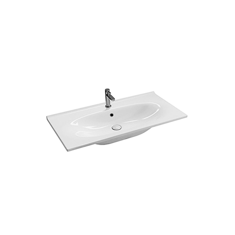 Раковина подвесная или встраиваемая в мебель HATRIA LE FIABE Y1BQ01, одно отверстие для смесителя, с отверстием перелива, размер 100х48.5 см, белая. В комплекте с креплением.